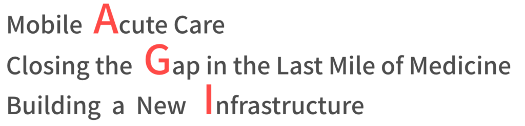 私たちは、救急医療体制を持続可能なものとし、すべての人が安心して医療にアクセスできる社会の実現を目指します。医師が指揮し、看護師・救命士が現場へ駆けつけるMobile Acute Careを軸に、医療のラストワンマイルを構築し、救急医療と在宅医療をつなぐ新しい医療アクセスを創出します。プレホスピタルにおける医療体制を整備することで、患者を適切な医療へ導き、救急医療体制の維持と在宅医療の拡張を実現します。